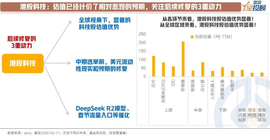 以恒生科技指数为例,收尾2026-02-11,自阶段性顶部已回落了20%,指数估值回落至22倍,计提了相对悲不雅的预期。短期不摒除连接轰动,但眷注后续缔造的3重能源: